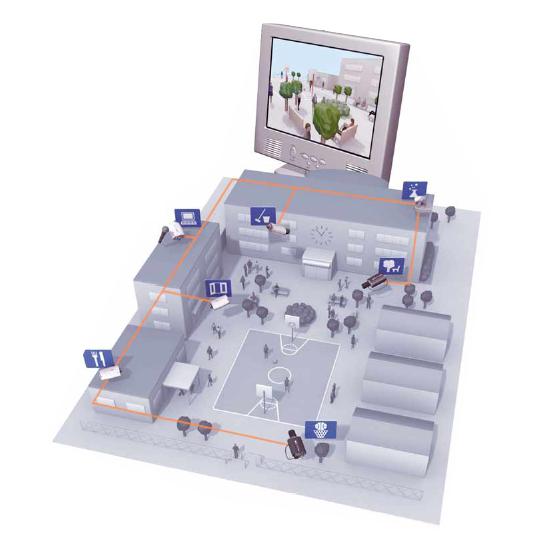 of playground areas, corridors, halls and classrooms. In the diagram,